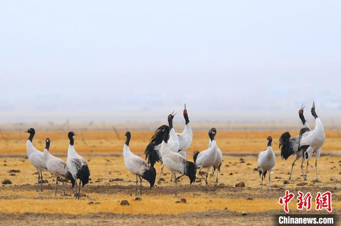 圖為拉薩市當雄縣阿熱濕地里的黑頸鶴。索朗多杰 攝