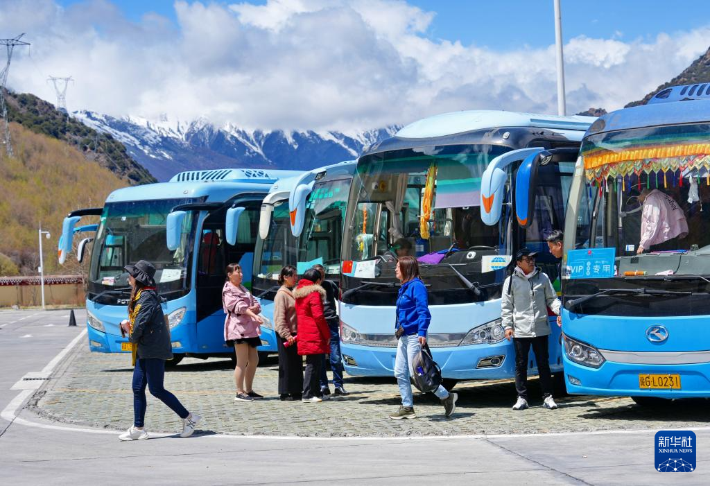 游客在拉(薩)林(芝)高等級公路工布江達(dá)縣服務(wù)區(qū)下車小憩(4月19日攝)。新華社記者 張汝鋒 攝