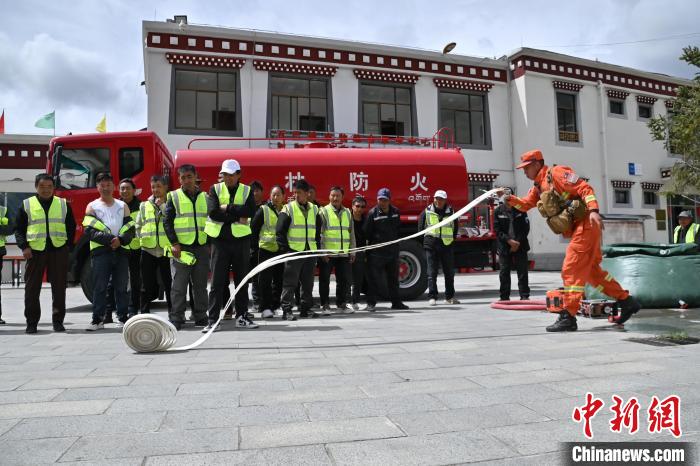 圖為森林消防隊(duì)員正在向護(hù)林員講解裝備知識(shí)。西繞拉翁 攝