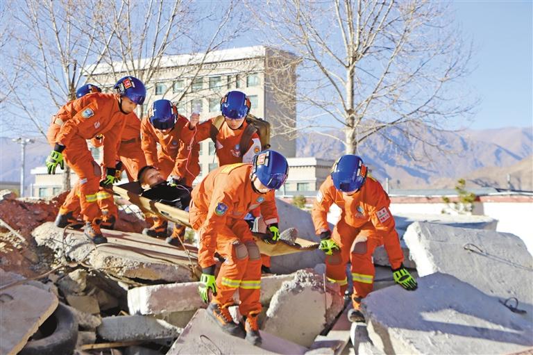 圖為消防員在開展救援演練。記者 王雨霏 攝