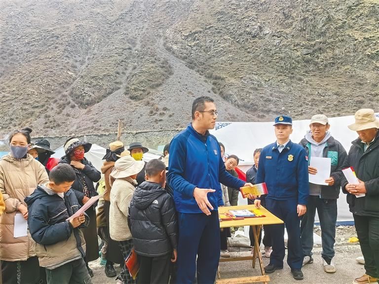 圖為宣傳員在蟲草采挖點(diǎn)向農(nóng)牧民群眾科普消防安全知識(shí)。肖暄 攝