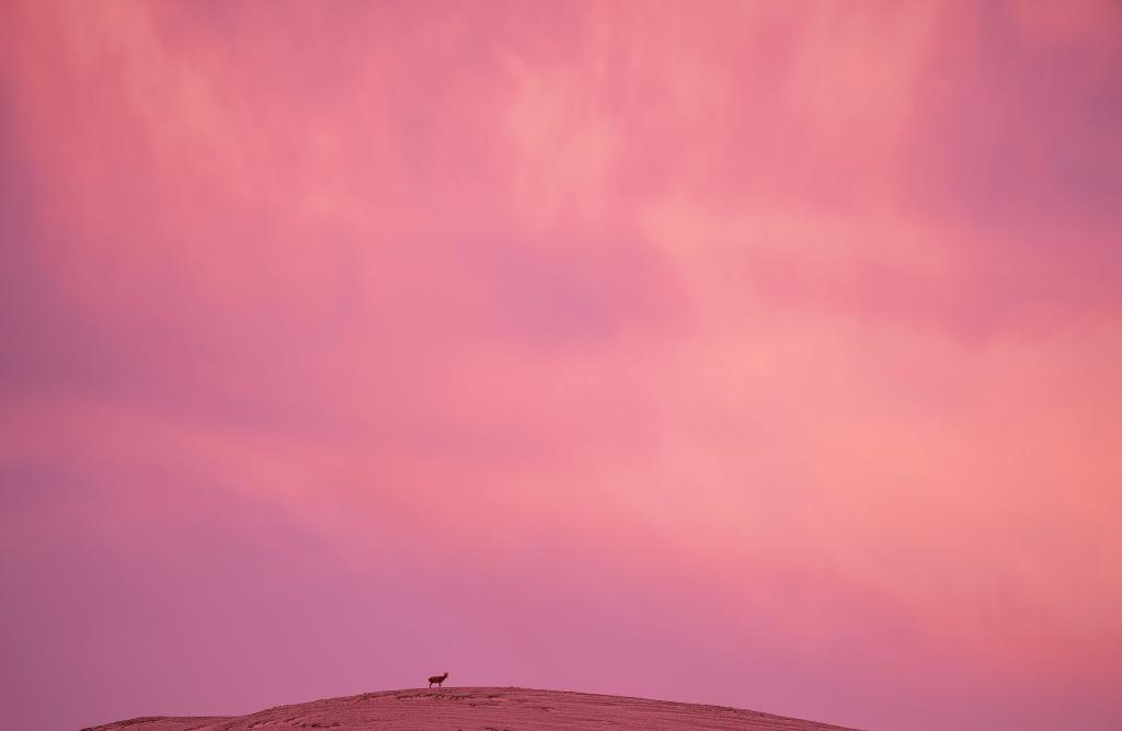 6月15日清晨雪后,在羌塘國家級自然保護(hù)區(qū),一只母藏羚羊站在山頂瞭望。