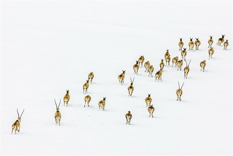 青藏高原的蒼茫大地間,一群群母藏羚羊排成長(zhǎng)隊(duì),向著“產(chǎn)房”走去,這是被譽(yù)為“全球最壯觀(guān)的三大有蹄類(lèi)動(dòng)物大遷徙之一”的藏羚羊遷徙。