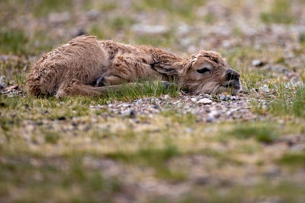 2024年6月17日,羌塘國家級自然保護(hù)區(qū)境內(nèi)的西藏那曲市申扎縣買巴鄉(xiāng)魯確塘草原上一只剛出生不久的小藏羚羊。