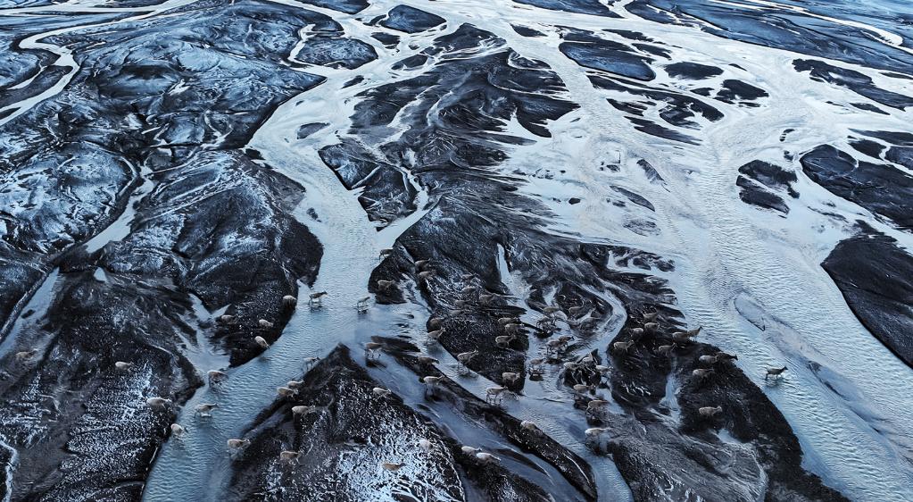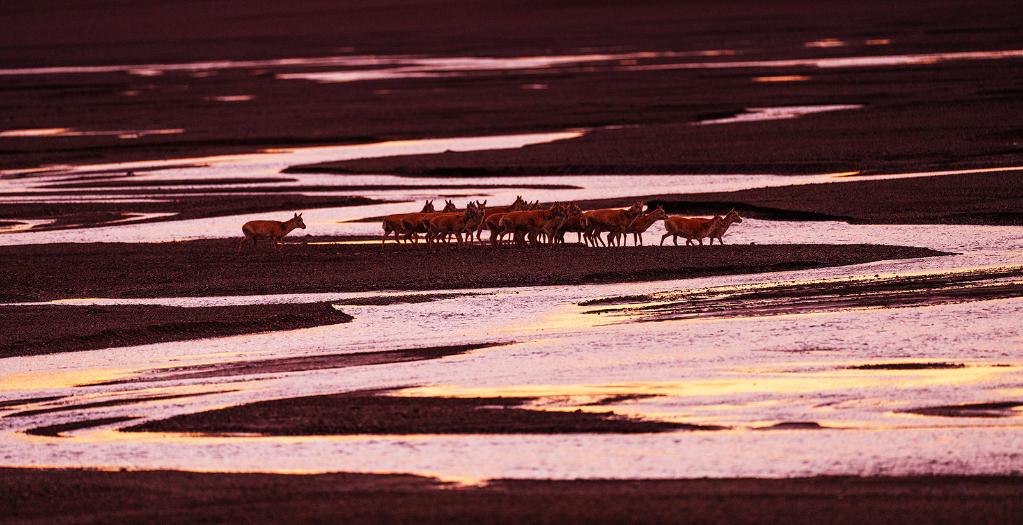 在羌塘國家級自然保護(hù)區(qū),藏羚羊越過甜水河,前往“產(chǎn)房”。