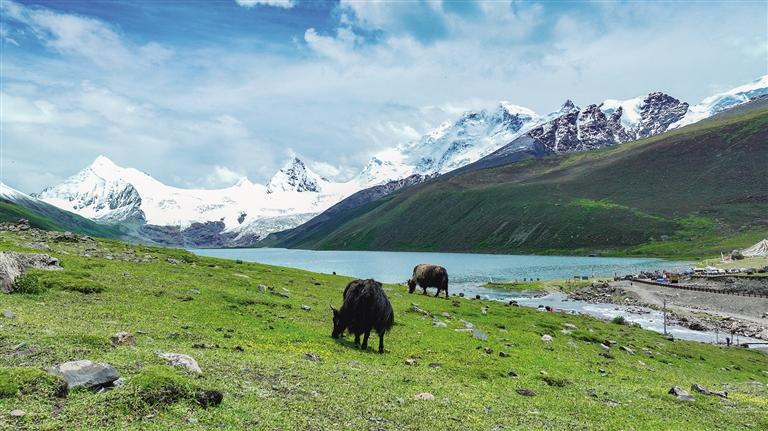 薩普雪山,坐落于那曲市比如縣羊秀鄉(xiāng)的普宗溝深處,是大自然的杰作。這座壯麗的雪山腳下,冰川如同時間的印記,靜靜流淌;湖泊如鏡,倒映著天空的純凈與雪山的威嚴;廣闊的草場綠意盎然,牛羊成群,和諧共生。這里的景致宛如人間仙境,美得令人窒息,讓無數(shù)游客和攝影愛好者神往。