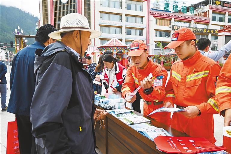 活動(dòng)現(xiàn)場(chǎng),波密縣森林消防中隊(duì)消防員通過(guò)發(fā)放防災(zāi)減災(zāi)宣傳資料、講解安全生產(chǎn)常識(shí)的形式,向過(guò)往群眾宣傳普及森林火災(zāi)、洪澇、山體滑坡、地震等自然災(zāi)害以及逃生自救、互救知識(shí)和技能。