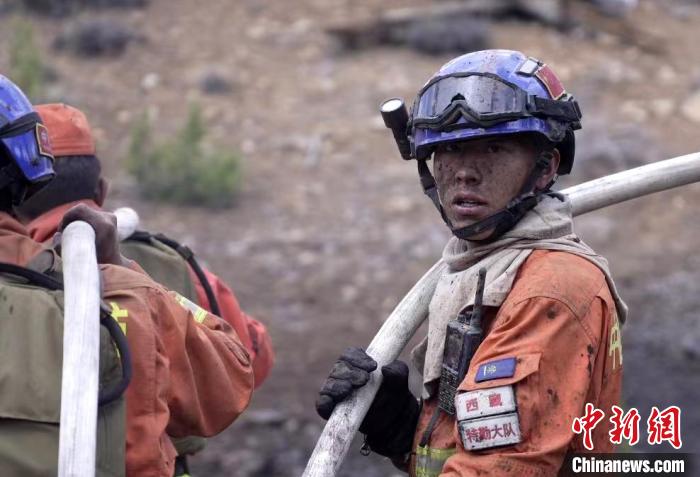 圖為滅火救援專業(yè)“兵王”蘇德超在5.31滅火救援中。西藏森林消防總隊供圖