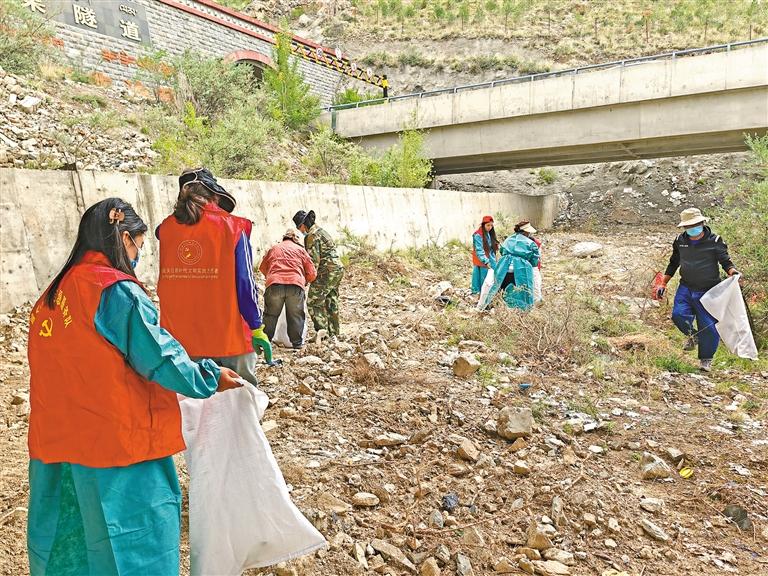 行動中,大家手持垃圾袋、清掃工具,各盡其責(zé),對隧道下的公共林區(qū)、后山周邊、背街小巷等處的白色垃圾、建筑垃圾、生活垃圾進行集中清理。隨后,拉薩市政府國資委機關(guān)黨支部在社區(qū)開展了“環(huán)保綠色 擁抱未來”倡導(dǎo)綠色理念的宣傳活動,并向社區(qū)全體網(wǎng)格工作人員發(fā)放了日常工作所需的環(huán)保用品。