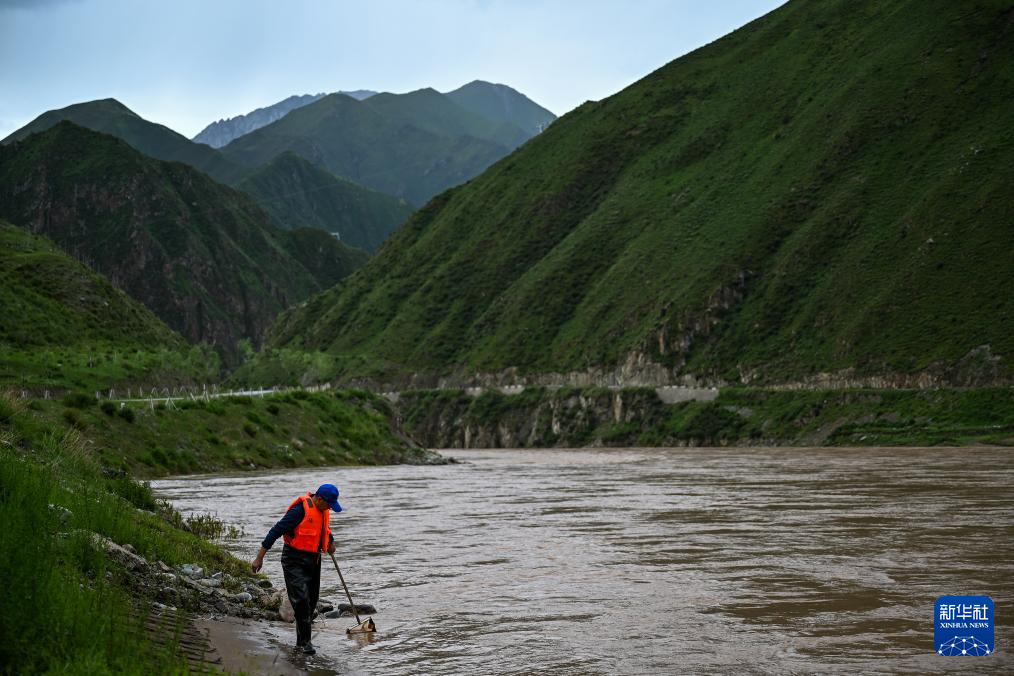 7月20日,在直門(mén)達(dá)水文站,長(zhǎng)江科學(xué)院流域水環(huán)境研究所喬強(qiáng)龍開(kāi)展現(xiàn)場(chǎng)魚(yú)類監(jiān)測(cè)。新華社記者 伍志尊 攝