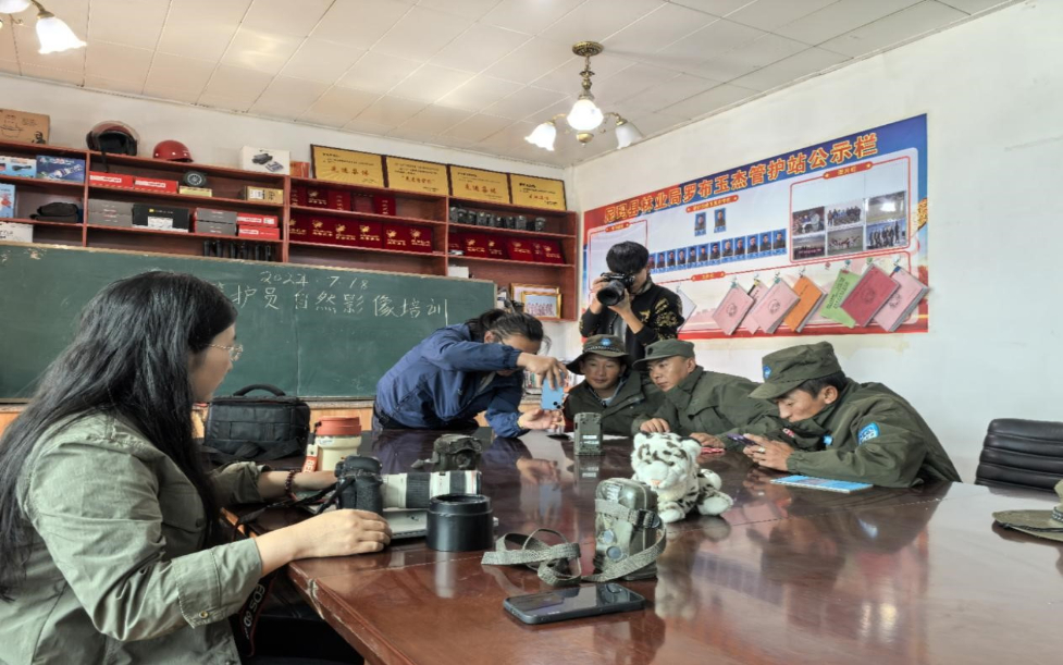 “喜馬拉雅生靈的朋友”自然影像團(tuán)隊(duì)正在對(duì)管護(hù)員們進(jìn)行培訓(xùn)(受訪者供圖)