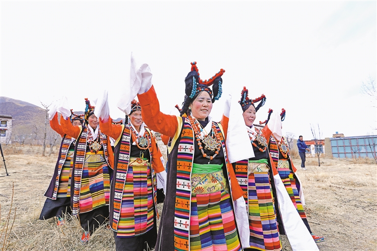“如今,這支隊(duì)伍已發(fā)展到20多名成員,都是當(dāng)?shù)厝罕姟K囆g(shù)隊(duì)經(jīng)常受邀參加各種大小晚會(huì)、重要節(jié)日演出和赴區(qū)內(nèi)外非遺展演等,其影響力和傳播力不斷提升,特別是甲瑪諧欽《和親路》受到廣泛歡迎?!奔赚斷l(xiāng)工作人員德吉卓嘎說(shuō)。