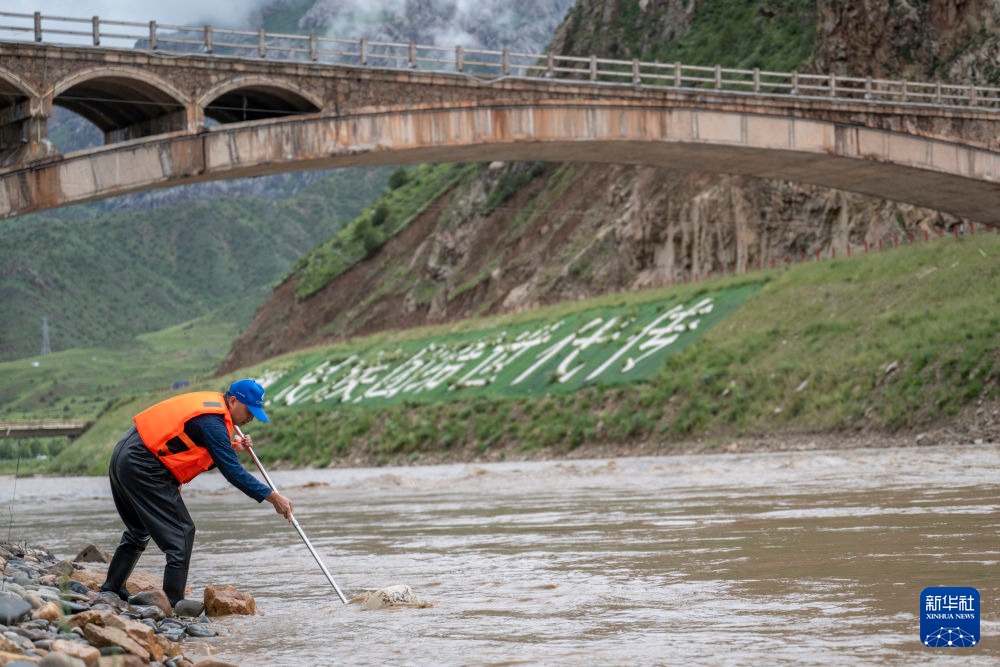 7月21日,在囊謙香達河段,科考隊員在進行底棲生物監(jiān)測采樣。新華社記者 伍志尊 攝