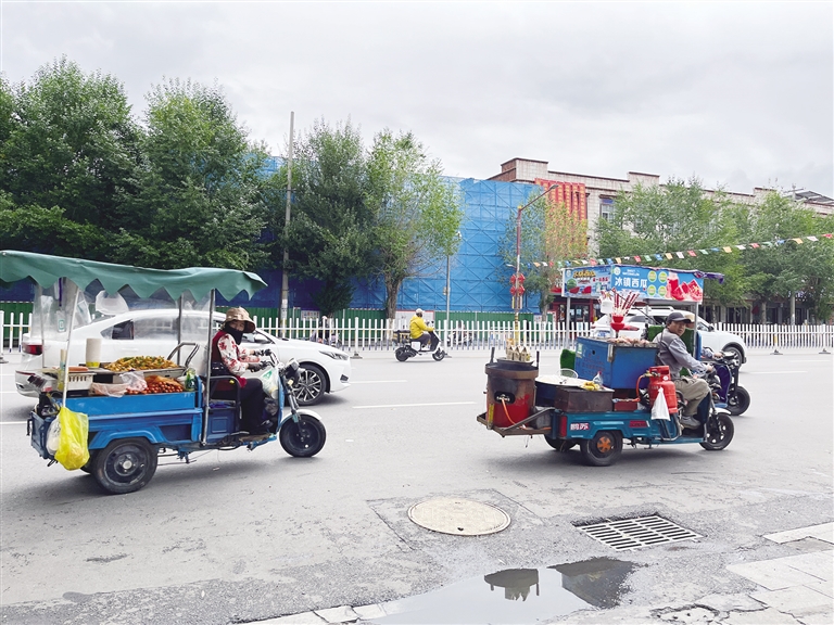 以往,布達拉宮西側(cè)沿街商鋪的“店外店”經(jīng)營現(xiàn)象十分普遍,街道顯得雜亂無章。經(jīng)過一系列整治,目前沿街商鋪均已實現(xiàn)了店內(nèi)經(jīng)營,整條街道變得干凈整潔,面貌煥然一新。在宗角祿康東門區(qū)域,以往流動商販聚集、占道經(jīng)營的現(xiàn)象也十分嚴(yán)重。這些商販不僅妨礙了交通,還存在隨意變道、逆行等危險行為,給過往行人帶來了極大的安全隱患。為了改善這一狀況,專項整治工作專班將流動商販治理作為重點內(nèi)容,通過加強巡查、安排城管執(zhí)法人員蹲點等方式,有效遏制了該區(qū)域的流動商販問題。如今,宗角祿康東門已難覓流動商販的身影。