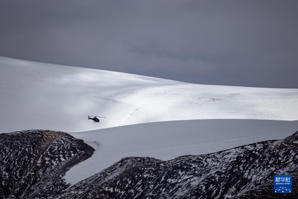 9月9日,直升機(jī)將科考物資從海拔5400米的第二次青藏科考普若崗日冰原大本營(yíng)運(yùn)往海拔6100米的“Dome.C”點(diǎn)。新華社記者 姜帆 攝