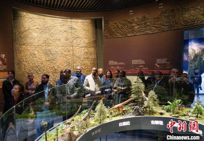 圖為代表團(tuán)一行參訪青海省自然資源博物館。中新社記者 馬銘言 攝