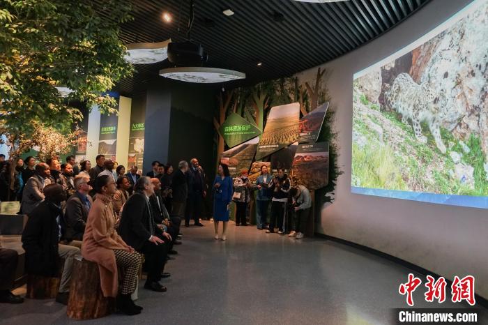 圖為代表團(tuán)一行在青海省自然資源博物館內(nèi)通過標(biāo)本了解高原野生動(dòng)物。中新社記者 馬銘言 攝