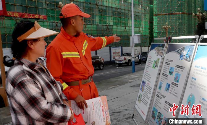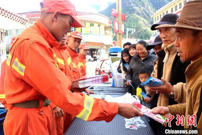 圖為消防救援人員發(fā)放宣傳手冊。費賢浩 攝