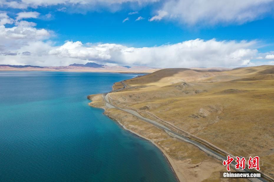 10月24日,鳥(niǎo)瞰深秋時(shí)節(jié)的錯(cuò)那湖,美景如畫(huà)。錯(cuò)那湖位于西藏自治區(qū)那曲市安多縣境內(nèi),是怒江的源頭湖。湖水在陽(yáng)光的照耀下,波光粼粼,湖岸線蜿蜒曲折,與周圍的山脈、鐵路、草原共同描繪出一幅美麗的畫(huà)卷。