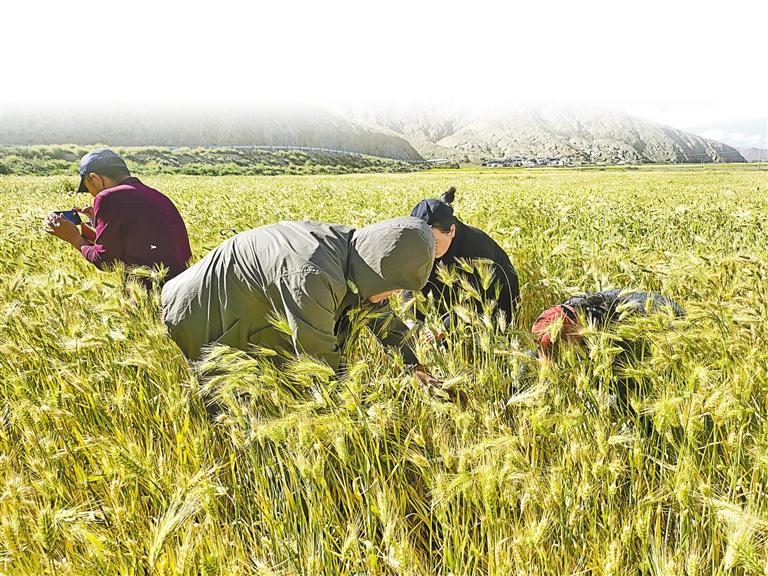 圖為農(nóng)業(yè)專技人員深入山南農(nóng)區(qū)開(kāi)展糧食測(cè)產(chǎn)工作。記者 巴桑旺姆 攝