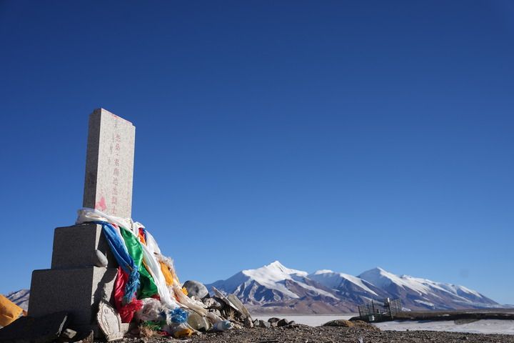 太陽湖毗鄰青海省第一高峰布喀達坂峰,被稱為“無人區(qū)中的無人區(qū)”,索南達杰的墓碑就佇立在太陽湖畔。
