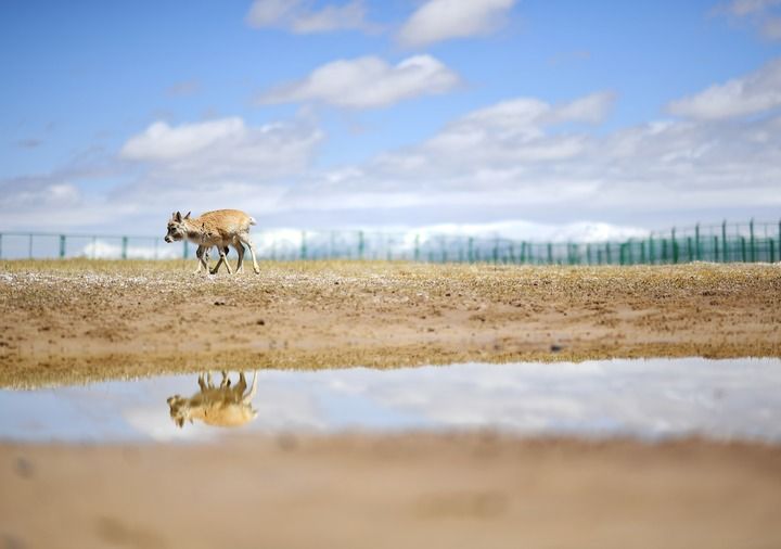 藏羚羊在可可西里國家級自然保護區(qū)索南達杰保護站野生動物救助中心活動(2023年5月30日攝)。新華社記者 薛玉斌 攝