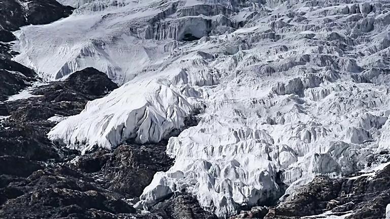 感受完藏歷新年的歡樂(lè)氛圍后,便可繼續(xù)前往卡若拉冰川??ㄈ衾ㄊ俏鞑鼐嚯x公路最近的冰川,也是電影《紅河谷》的取景地。盡管已到2月末、3月初,但由于海拔較高,冰川受氣溫回暖的影響較小。在距離卡若拉冰川不遠(yuǎn)處,有一處小眾打卡點(diǎn)——恰央措,近年來(lái)受到越來(lái)越多人的關(guān)注。恰央措的藍(lán)冰呈深藍(lán)色,冰下布滿密密麻麻的白色網(wǎng)狀紋路,景象十分壯觀,拍照效果極佳。