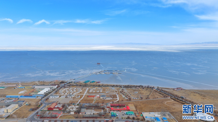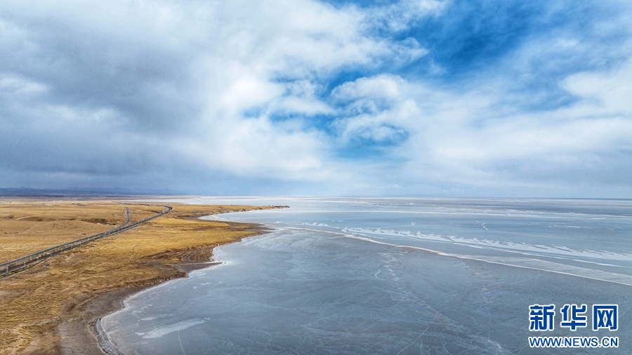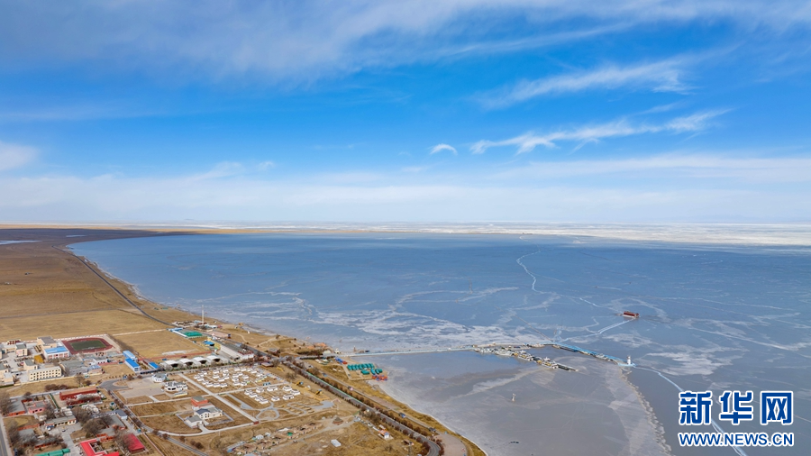這是2月15日拍攝的青海湖北岸一角(無人機照片)。新華網(wǎng)發(fā) (宋忠勇 攝)