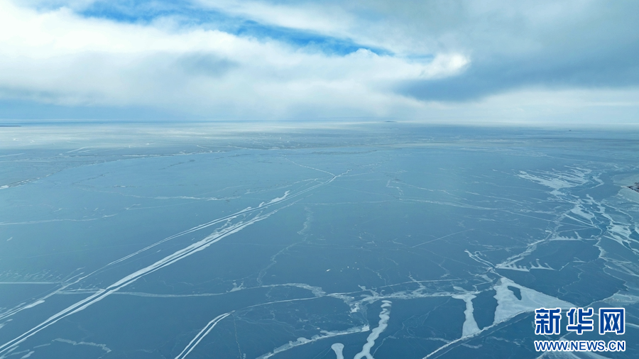 2月15日,青海湖湖水被冰層覆蓋(無人機照片)。新華網(wǎng)發(fā) (宋忠勇 攝)