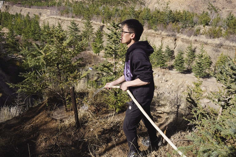 “你看那邊,再看那邊,現(xiàn)在都綠了?!崩_市南山公園安全負(fù)責(zé)人、護(hù)林員扎西曲培手指著南山自豪地說道,2012年他拍了一張照片,這兒只是一片荒山,滿地都是石頭,現(xiàn)在綠樹滿山,而且公園里的油松、白皮松、側(cè)柏等樹種已經(jīng)繁衍出了“樹二代?!薄?/p>