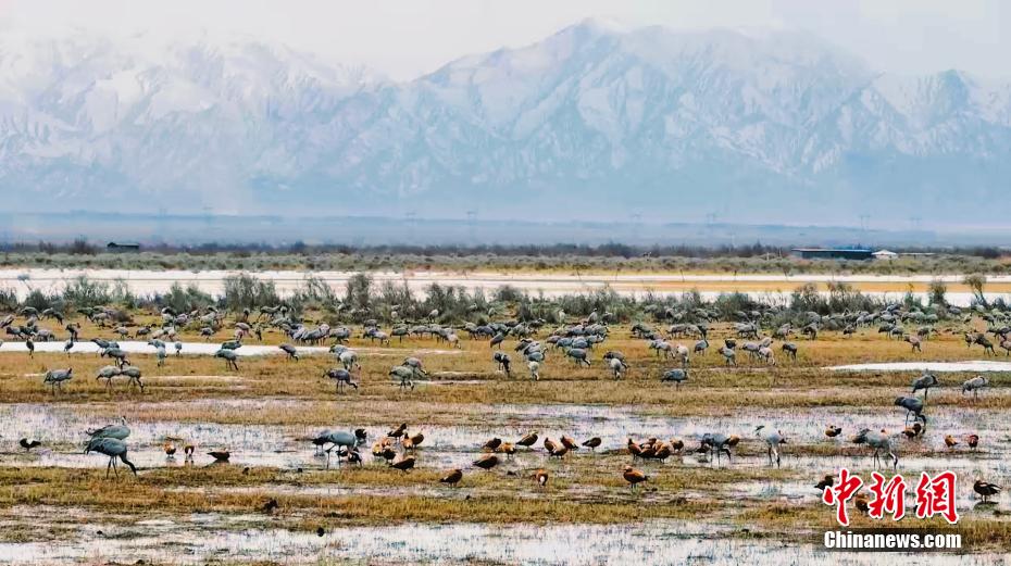 連日來,成群灰鶴聚集于青海省海西蒙古族藏族自治州都蘭縣巴隆鄉(xiāng)鐵絲蓋地區(qū)?;寅Q是國(guó)家二級(jí)重點(diǎn)保護(hù)野生動(dòng)物。圖為灰鶴等野生鳥類群在濕地休憩。