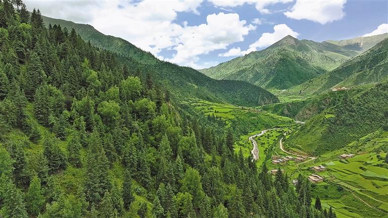 在護林員的默默守護下,貢覺縣則巴鄉(xiāng)林區(qū)生機盎然。記者 貢秋曲措 通訊員 董燕 西繞丹青 攝