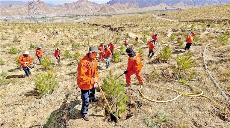 圖為4月3日,拉薩市堆龍德慶區(qū)德陽村的植樹造林現(xiàn)場。記者 白瑪澤旺 攝