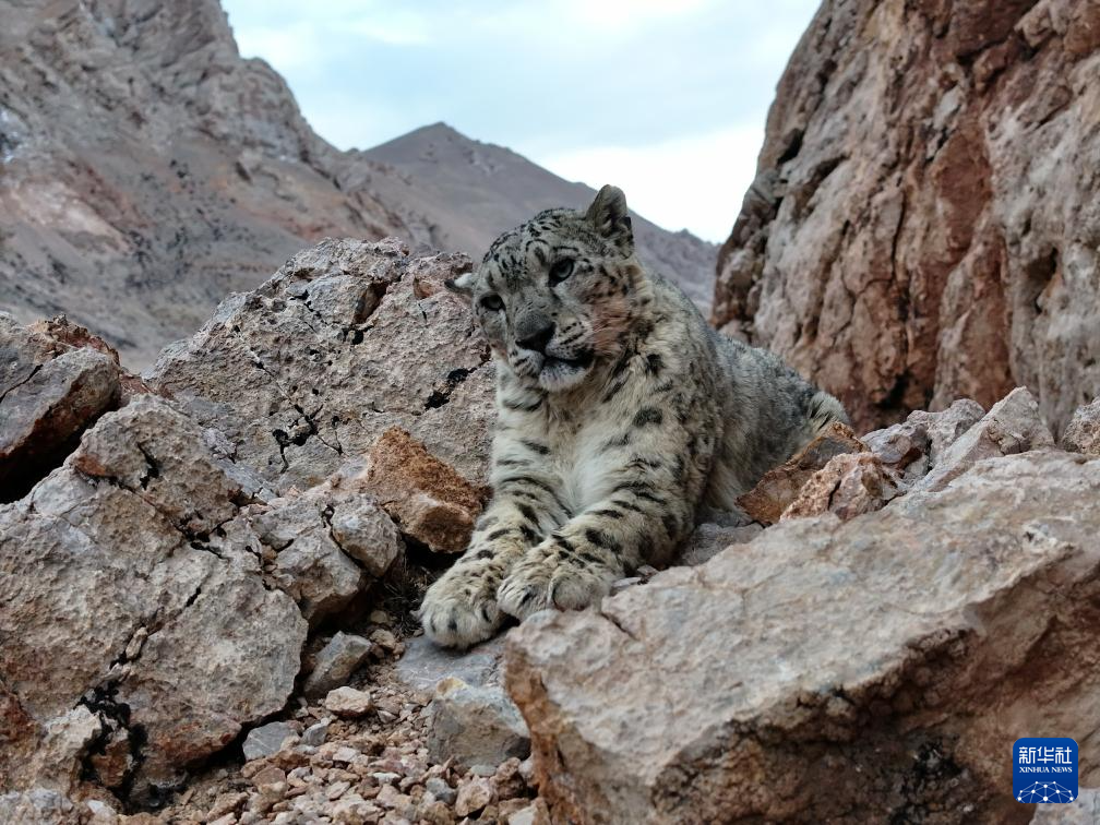 西藏阿里改則縣改則鎮(zhèn)玉多村附近巖山區(qū)域拍攝到的國家一級保護動物雪豹(4月18日攝)。