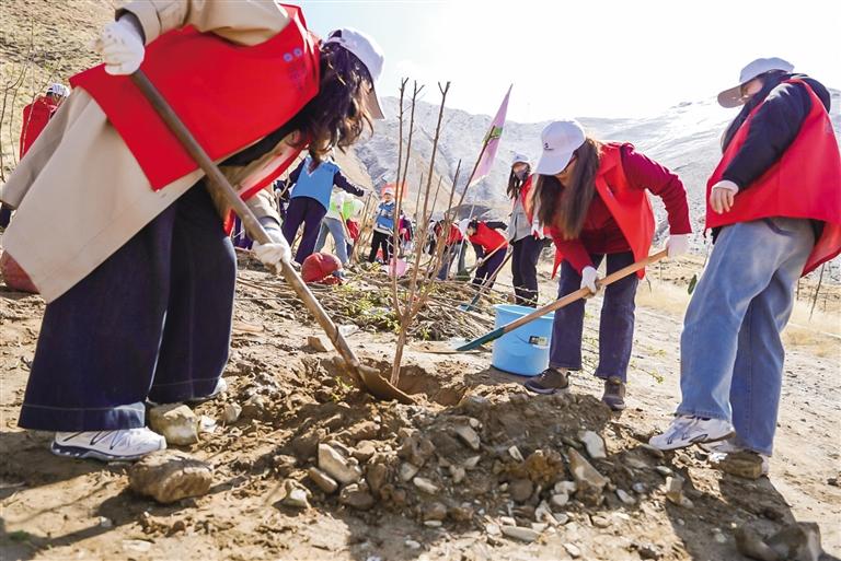 本次“遇‘建’南北山·‘?dāng)?shù)’植生態(tài)林——我在西藏有棵樹”大型公益植樹活動(dòng),旨在踐行綠水青山就是金山銀山理念,以實(shí)際行動(dòng)深入落實(shí)西藏建設(shè)國家生態(tài)文明高地部署要求,錨定“五年增綠山川、十年綠滿拉薩”目標(biāo),進(jìn)一步激發(fā)社會(huì)大眾的愛林護(hù)林造林意識(shí)和綠色生態(tài)發(fā)展意識(shí)。近年來,中國建設(shè)銀行西藏自治區(qū)分行始終堅(jiān)持以人民為中心的發(fā)展思想,堅(jiān)持“三帶一融合”做公益,以綠色金融為筆,以生態(tài)建設(shè)為卷,在守護(hù)高原生態(tài)屏障的征程中篤行不怠。中國建設(shè)銀行西藏自治區(qū)分行黨委委員、副行長(zhǎng)鄧存云表示:“中國建設(shè)銀行西藏自治區(qū)分行積極承擔(dān)國有大行社會(huì)責(zé)任,致力公益事業(yè)發(fā)展,始終將綠色金融理念融入生態(tài)文明發(fā)展血脈,堅(jiān)定不移地支持生態(tài)建設(shè)事業(yè)。自2022年承接拉薩市白定東2-1號(hào)片區(qū)綠化工程任務(wù)以來,累計(jì)投入項(xiàng)目資金3000余萬元,累計(jì)種植各類苗木32萬余株(含補(bǔ)植),種植覆蓋率和成活率均達(dá)90%以上,有力帶動(dòng)當(dāng)?shù)貏趧?wù)用工8000余人次,累計(jì)為南北山綠化工程發(fā)放專項(xiàng)貸款6.46億元,取得了較好的生態(tài)效益、經(jīng)濟(jì)效益和鄉(xiāng)村振興效益?!?/p>