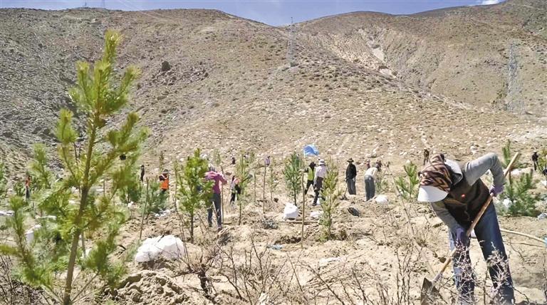 圖為六月八日,南北山綠化工程桑日段植樹(shù)現(xiàn)場(chǎng)。 通訊員 阿旺金巴 攝
