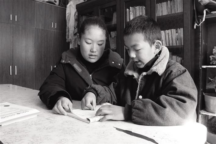 索朗曲珍輔導(dǎo)弟弟學(xué)習(xí)。文/記者 婁夢(mèng)琳 圖/記者 孫敏
