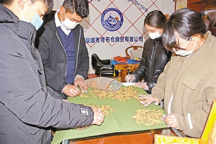 穹布倉大學生創(chuàng)業(yè)者正在包裝藏藥蟲草茶。