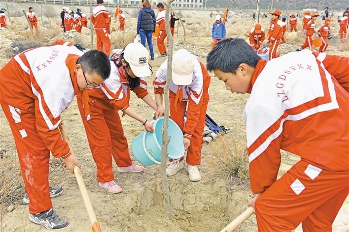 又是一年植樹時。每年3月,西藏林芝廣東實驗學(xué)校都會組織學(xué)生參加義務(wù)植樹活動,為美麗林芝再添新綠。