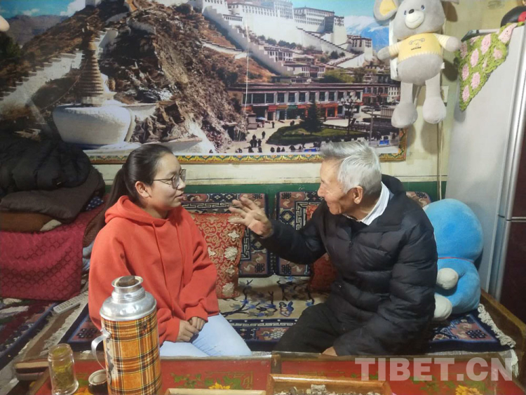 圖為學生在家中聽長輩講述61年前的故事 圖片由拉薩中學提供