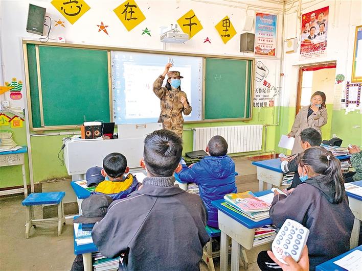 圖為汪瑞為駐地師生講解心理測驗方法及規(guī)則。(圖片由汪瑞提供)