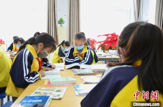 圖為化隆縣第一小學(xué)的學(xué)生們在閱覽室讀書?!◆?shù)り?攝