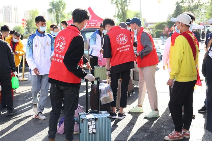 21日,西藏大學(xué)2020級(jí)區(qū)外生源學(xué)生陸續(xù)報(bào)到,志愿者在幫新同學(xué)搬運(yùn)行李。本報(bào)記者 潘璐 攝