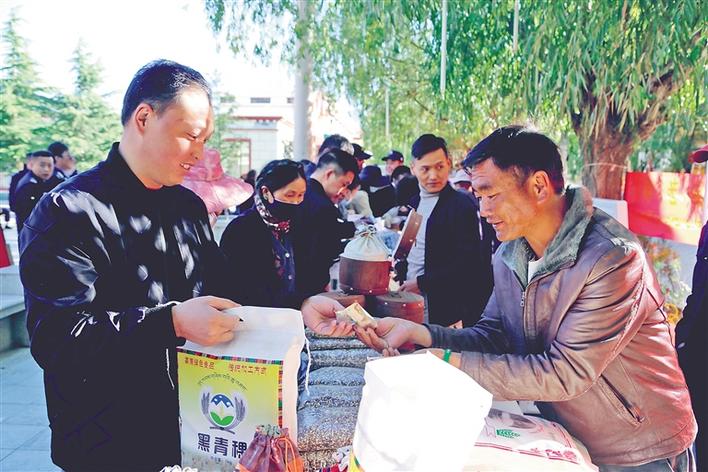 圖為當(dāng)?shù)厝罕娫谶x購扶貧產(chǎn)品。本報記者 次旺 攝