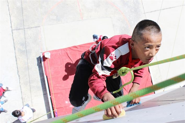 在日喀則市桑珠孜區(qū)第三小學(xué),西藏自治區(qū)登山隊(duì)攀巖隊(duì)6名運(yùn)動(dòng)員分別向?qū)W生展示了競(jìng)技攀巖中的男、女速度賽和難度賽項(xiàng)目表演?;顒?dòng)中,運(yùn)動(dòng)員們?yōu)閷W(xué)生普及攀巖基本知識(shí),還通過(guò)親身示范、分組競(jìng)技展現(xiàn)攀巖的魅力,讓他們體驗(yàn)攀巖樂趣,為普及發(fā)展攀巖運(yùn)動(dòng)打下堅(jiān)實(shí)基礎(chǔ),同時(shí)讓更多的青少年了解、認(rèn)識(shí)這項(xiàng)運(yùn)動(dòng),并為青少年健康成長(zhǎng)提供良好的服務(wù)。
