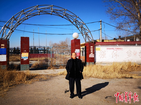 杜潤拴站在原崇實(shí)中學(xué)校門口。江山 攝