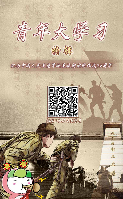 70年前,中國(guó)人民志愿軍肩負(fù)著人民的重托、民族的期望,高舉保衛(wèi)和平、反抗侵略的正義旗幟,雄赳赳、氣昂昂,跨過(guò)鴨綠江,抗美援朝、保家衛(wèi)國(guó)。本期“青年大學(xué)習(xí)”來(lái)到位于遼寧丹東的抗美援朝紀(jì)念館,和廣大青年一起翻開(kāi)那段波瀾壯闊的歷史畫(huà)卷,探求中華民族生生不息的精神密碼。