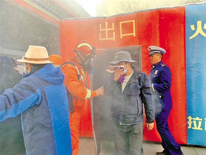拉薩市消防救援部門(mén)組織市民開(kāi)展火災(zāi)疏散逃生應(yīng)急演練。