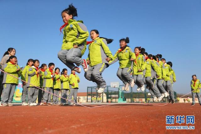 11月12日,學生在大課間參加集體跳繩。 位于山東省青島市即墨區(qū)的青島藍谷高新區(qū)東皋埠小學是一所鄉(xiāng)村學校,近年來,學校開展以乒乓球、籃球、跳繩等運動為主的大課間活動,讓孩子們在享受運動的同時愉悅身心,增強體質(zhì)。 新華社發(fā)(梁孝鵬攝)