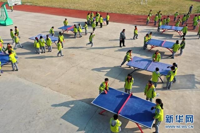 11月12日,學生在大課間打乒乓球(無人機照片)。 位于山東省青島市即墨區(qū)的青島藍谷高新區(qū)東皋埠小學是一所鄉(xiāng)村學校,近年來,學校開展以乒乓球、籃球、跳繩等運動為主的大課間活動,讓孩子們在享受運動的同時愉悅身心,增強體質(zhì)。 新華社發(fā)(梁孝鵬攝)